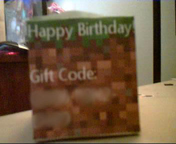We got my younger brother a Minecraft gift code for his birthday, and we wanted a cool way to present it. So, I downloaded a grass block template, went onto Gimp, and added the text. He was pretty excited to get Minecraft for his birthday, and I suggest this to anyone who is giving someone a gift code.
