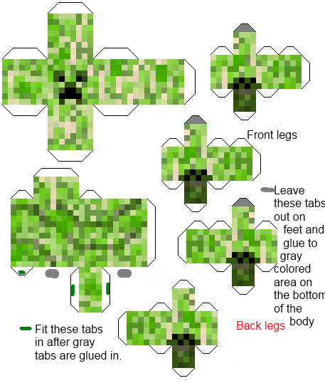 "I made a version of the creeper that has the legs glue into the rest of the body so they do not have to be taped on."