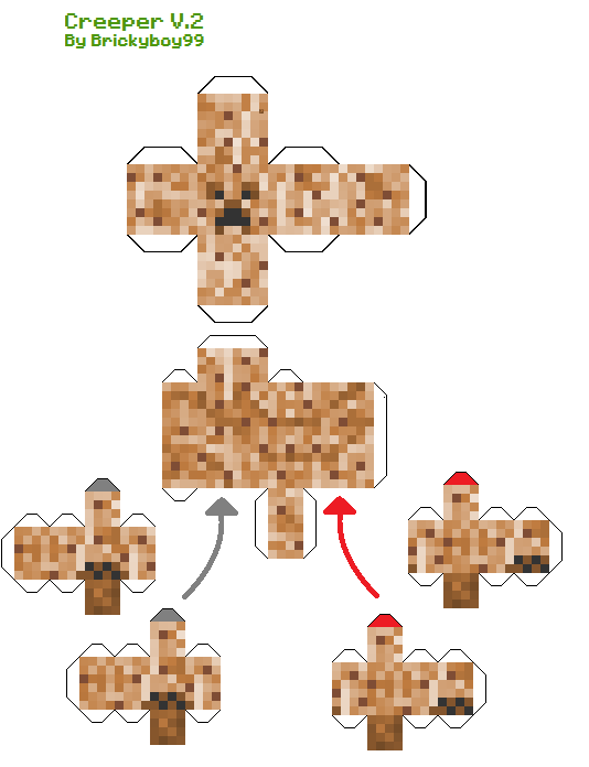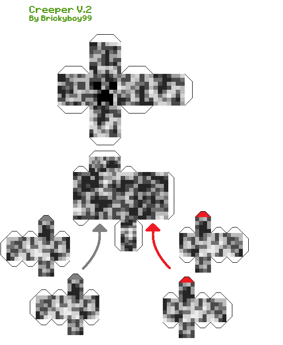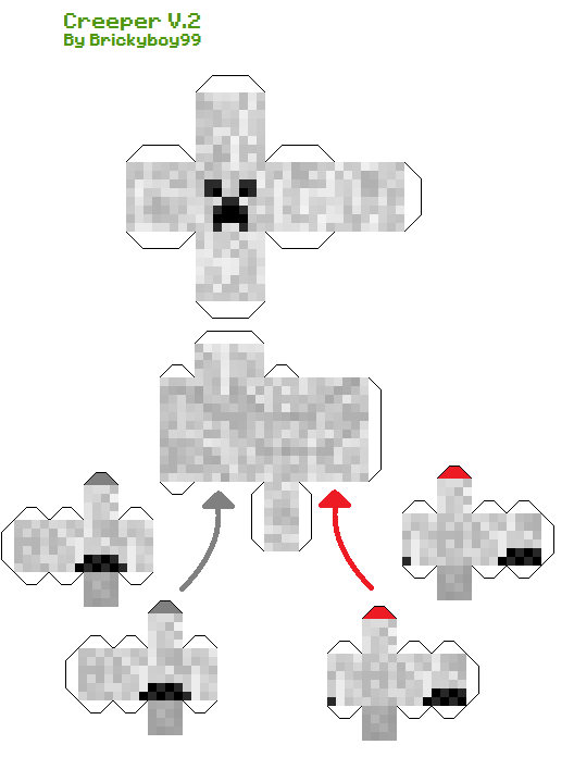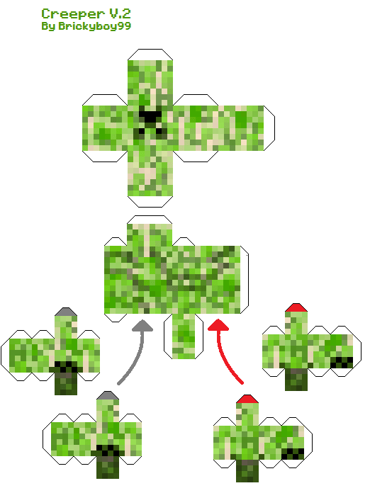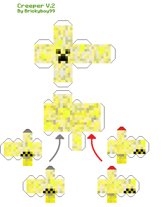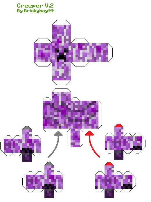 Okay, as the IMMENSELY popular Elemental Creepers designs were made by a great person called papercrafter, I realized the legs did not go diagonal unlike lostminer's and some, just some pixels were in the wrong place. So I vowed to make a NEW DESIGN from this. I apologize if the tabs are 2 pixels thick, and if pixels are outstreched, I used the texture from the original design. Happy papercrafting!