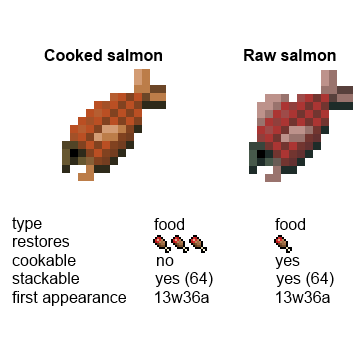 the salmon from the 13w36a snapshot! i would prefer eating this, no the pufferfish. this fish actually does fix some hunger.