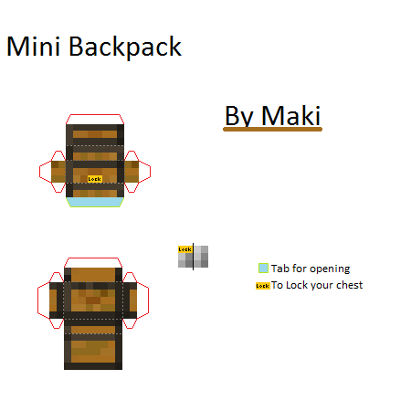 This is a normal backpack where you can more items than in inventory. Your mini is allowed to hold 10 stacks of items, but now! Backpack allows him to store 30 more!! Now your mini will never will be full.