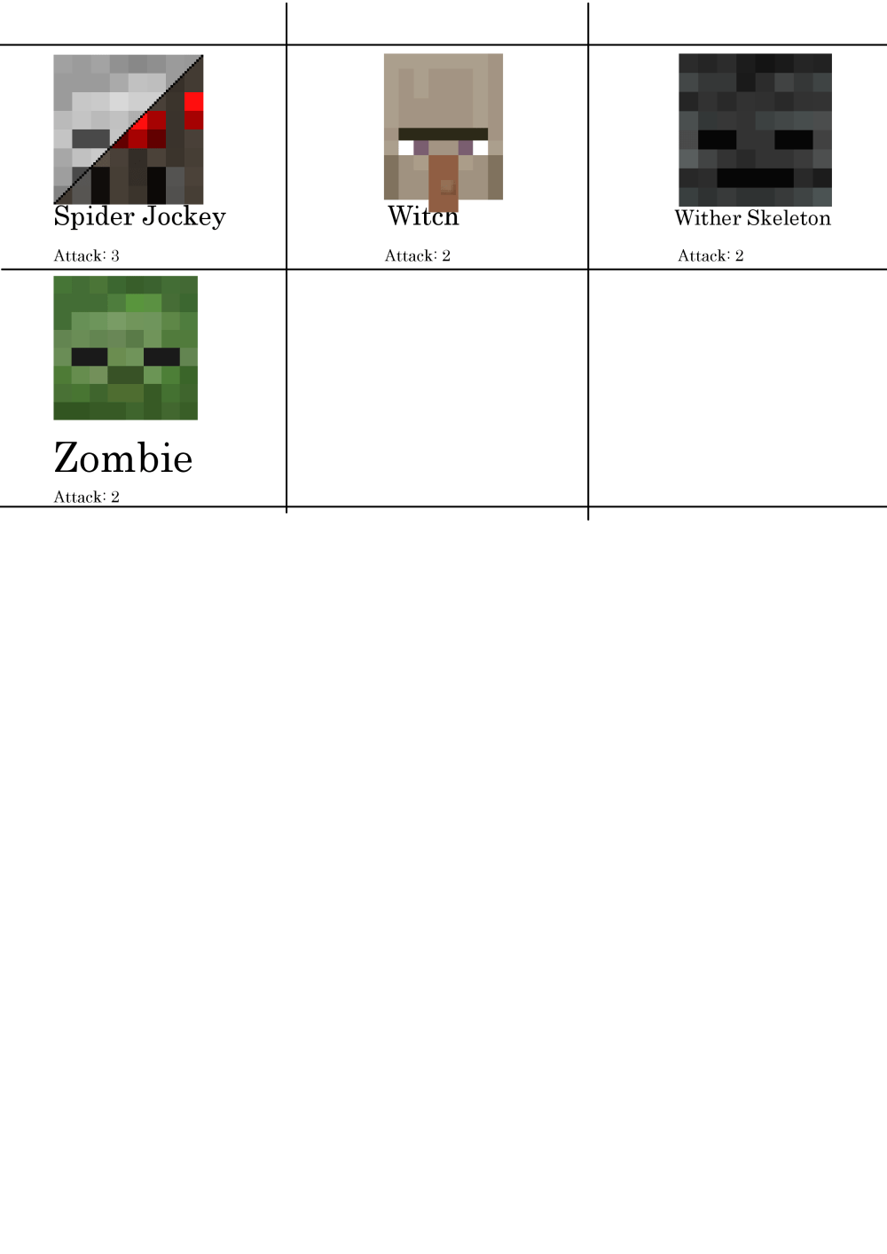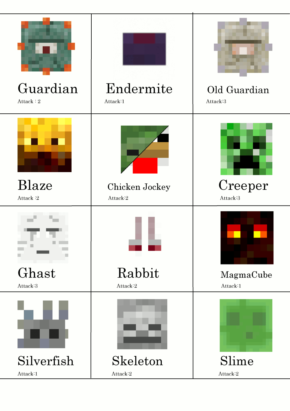 Mob Attack is a Minecraft strategy board game. 1st picture: Screenshot 2nd picture: Cards 3rd picture: Arena 4th picture: 2nd Cards 5th picture: InstructionCredit to Mojang for Minecraft Mob Face. Print the card paper at least 4 paper. The black line is cutline and cutline is line to cut.