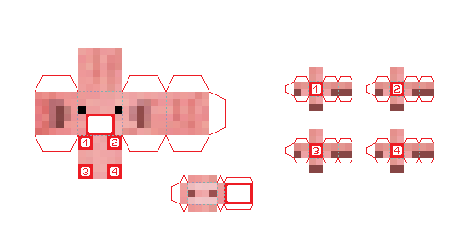 Pig: http://pixelpapercraft.com/papercraft/53edbff14d7983ce310000b2/project-mini-mobs-pig