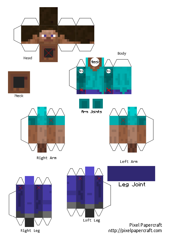 How to make: Roll up the Neck, Arm Joints and Leg Joints into tubes, glue the Neck and Arm Joints to the body, cut the X's on the Arms and Head, and put them on!