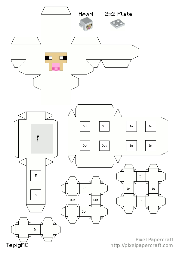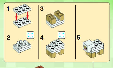 This is a LEGO sheep based on the sheep in the Minecraft The Farm LEGO set. It is to scale with the LEGO papercrafts by jojesper. The pieces are seperate and can be taken apart. If you want a sheep with attached pieces, build this sheep instead.