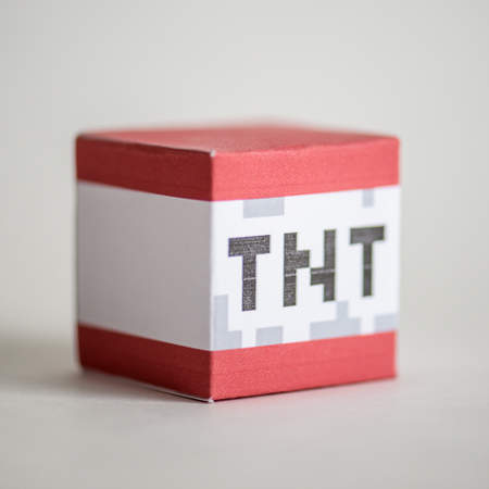 This is a LEGO TNT block based on the TNT block in the Minecraft The Cave LEGO set. It is to scale with the LEGO papercrafts by jojesper. If you want a TNT block with seperate pieces, build this TNT block instead.