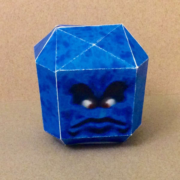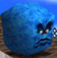 Thwomps return in Super Mario 64. This time, though, Thwomps return in a much different fashion, and look more like they did in Super Mario Kart. These Thwomps are square-shaped, dark sky blue-colored with no spikes. They, as before, are impossible to destroy and serve as obstacles throughout the game. Unlike the previous games, Thwomps constantly slam to the ground even when Mario isn't around. This time around, though, Mario can also use Thwomps to his advantage by jumping on top of them to reach higher areas or unreachable points. An interesting feature of the Thwomps in this game is the addition of their voices: a mad grunt. Thwomps are especially featured in Whomp's Fortress, which also introduces new Thwomp-like creatures known as Whomps. A single Thwomp also appears in Tick Tock Clock. There are only three Thwomps in the game, two on the stairs in Whomp's Fortress and one in Tick Tock Clock, at the very top of the stage, and is featured in the mission Stomp on the Thwomp.~Mario Wiki