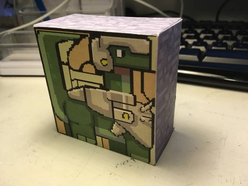Two full size blocks high and 2 full size blocks wide. Based on the Bronto troop from the game Stacker War.