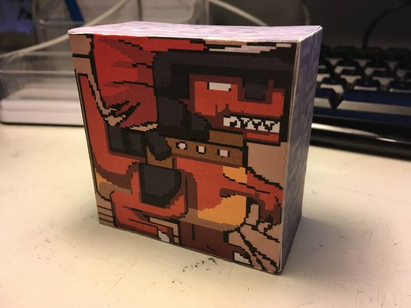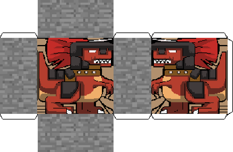 2 full size blocks high and 2 full size blocks wide. Based on the Rex troop from the game Stacker War.
