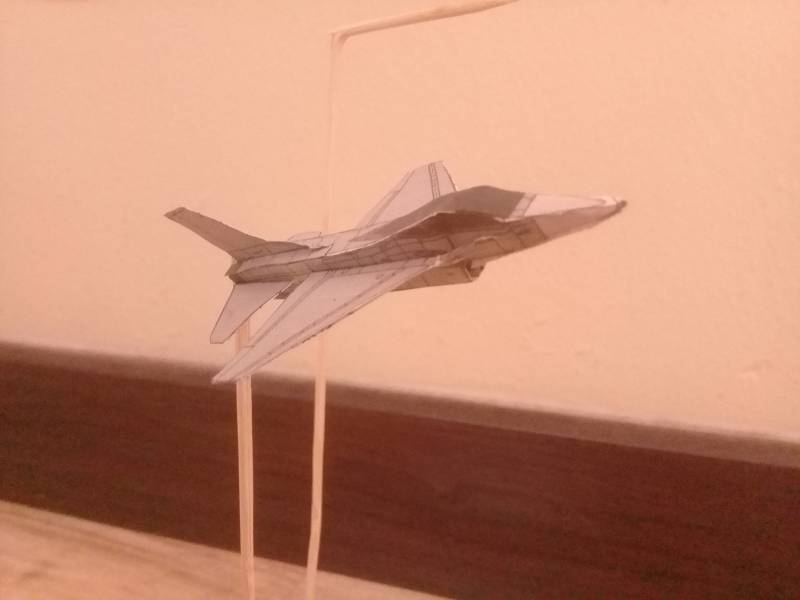 Inspired by MikroModels paper jets, I decided to make my own paper jet. It took 3 days until it was perfected. The construction of this model is pretty self-explanatory there is a blueprint of the F-16 provided below for references. Sadly, this model is only stationary.