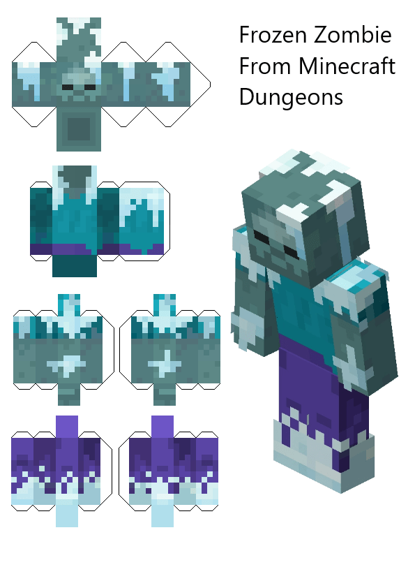 The Frozen Zombie is a hostile mob and cold variant of the zombie found in Minecraft Dungeons. It is one of the new mobs included in Creeping Winter, the second DLC pack for Minecraft Dungeons. It is also included in the third DLC Howling Peaks.