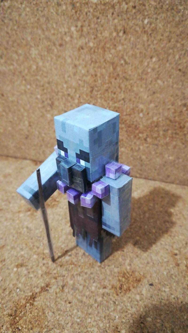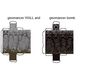 The Geomancer is an illager mage, which is noted by its thick beard and eyebrows. It wears dark brown, ragged clothing and a purple crystal necklace around its neck. It is often seen with a walking stick and it uses this to summon walls of stone. Unlike other illagers, the Geomancer bears purple eyes instead of the normal blue or green eyes. It's skin also appears to slightly have a caveman aspect. gamepedia