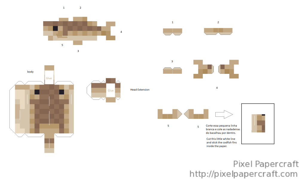 The most difficult part when making this papercraft it's cut the white lines to glue the fins . I recommend using a stylet to cut out the white area. After cutting, fit the paper and glue inside. Then glue the body and the final part of the head.