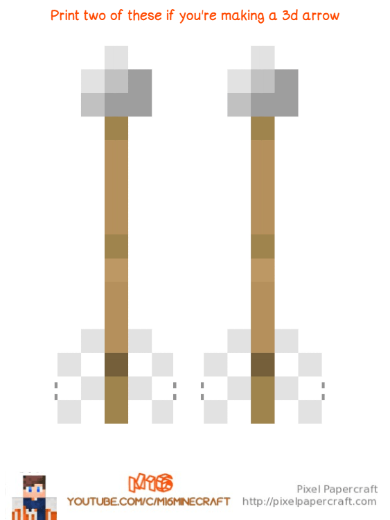 Original description: Hey, again paper crafters! For one of the videos on my channel, I printed out the life-size 3d bow and arrow design here on pixel papercraft (https://www.pixelpapercraft.com/papercraft/57d48ea4f3c016144b8735d1/bow-and-arrow-life-size-3d) and a few things were off about the design to me. The "string" cubes were completely missing any sort of tabs, as well as the joining parts of the bow; so I added those. I also fixed the arrow and added an extra page so you can make it 3d if you want. Want to check out a tutorial for this? Then check out my YouTube which will hopefully have a tutorial up by the time this gets approved! http://youtube.com/c/m16minecraft