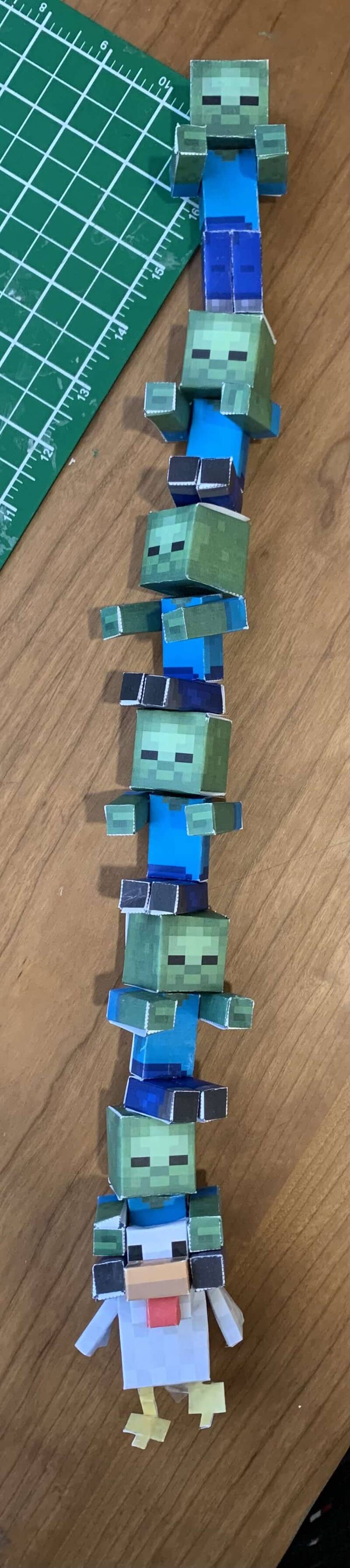 Papercraft: A Chicken Jockey Tower from Minecraft Dungeons. You have to print out the Baby Zombies 6 times!