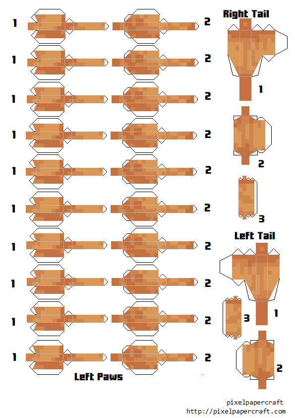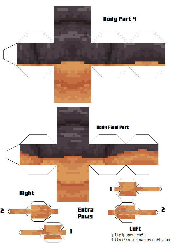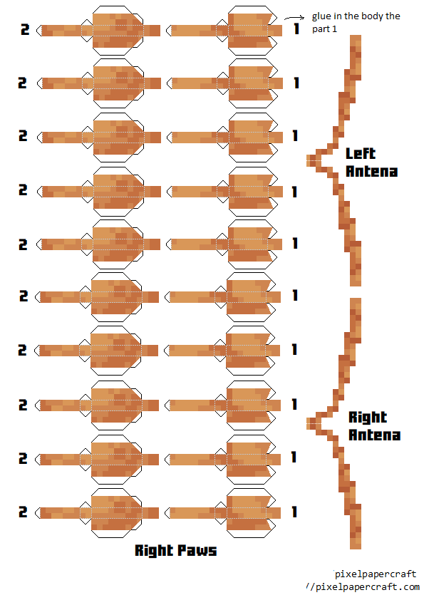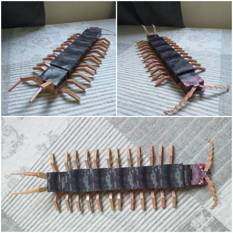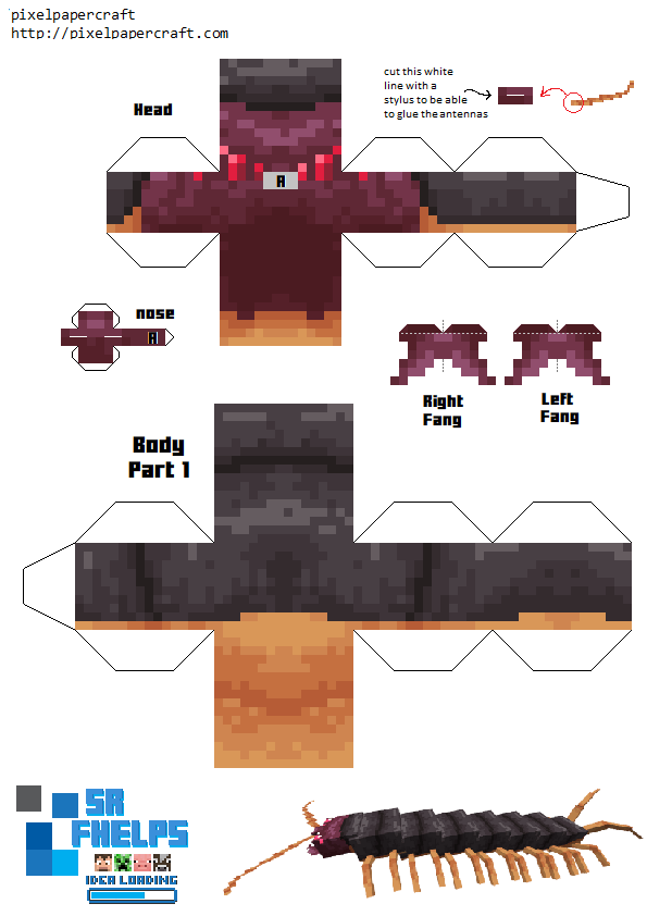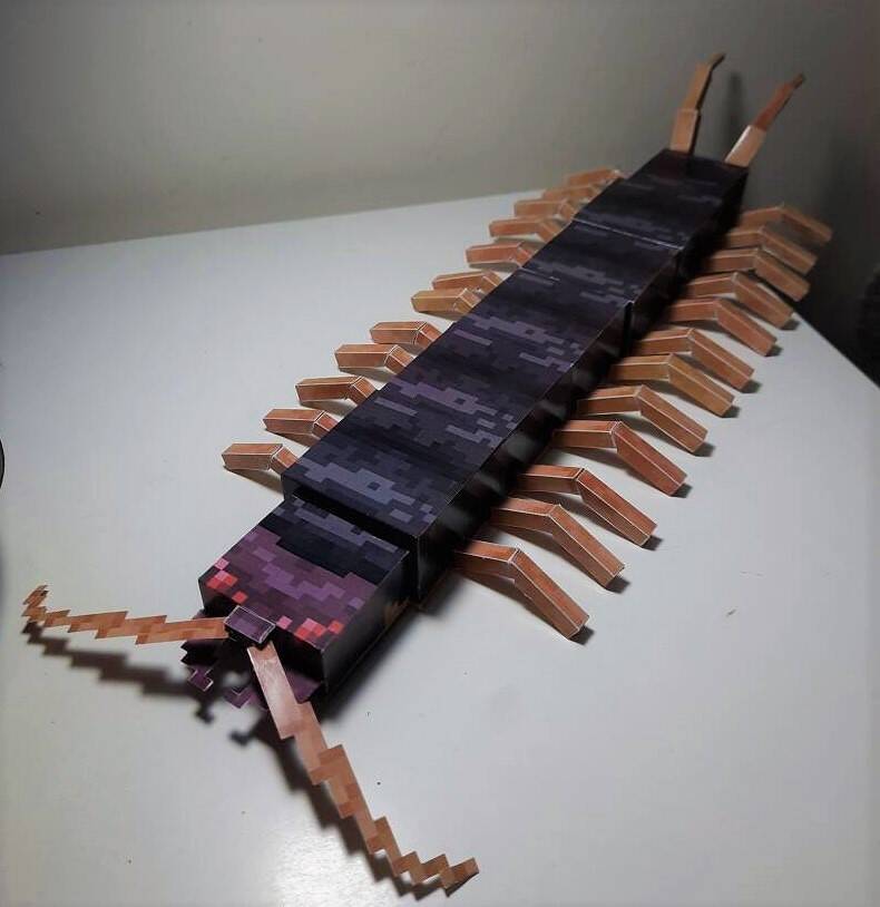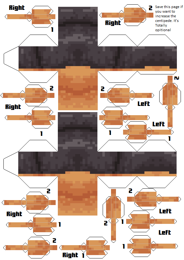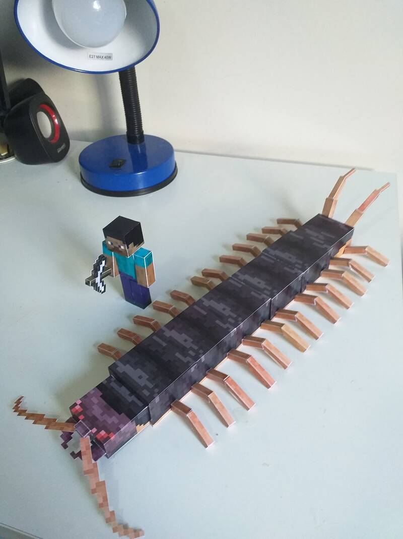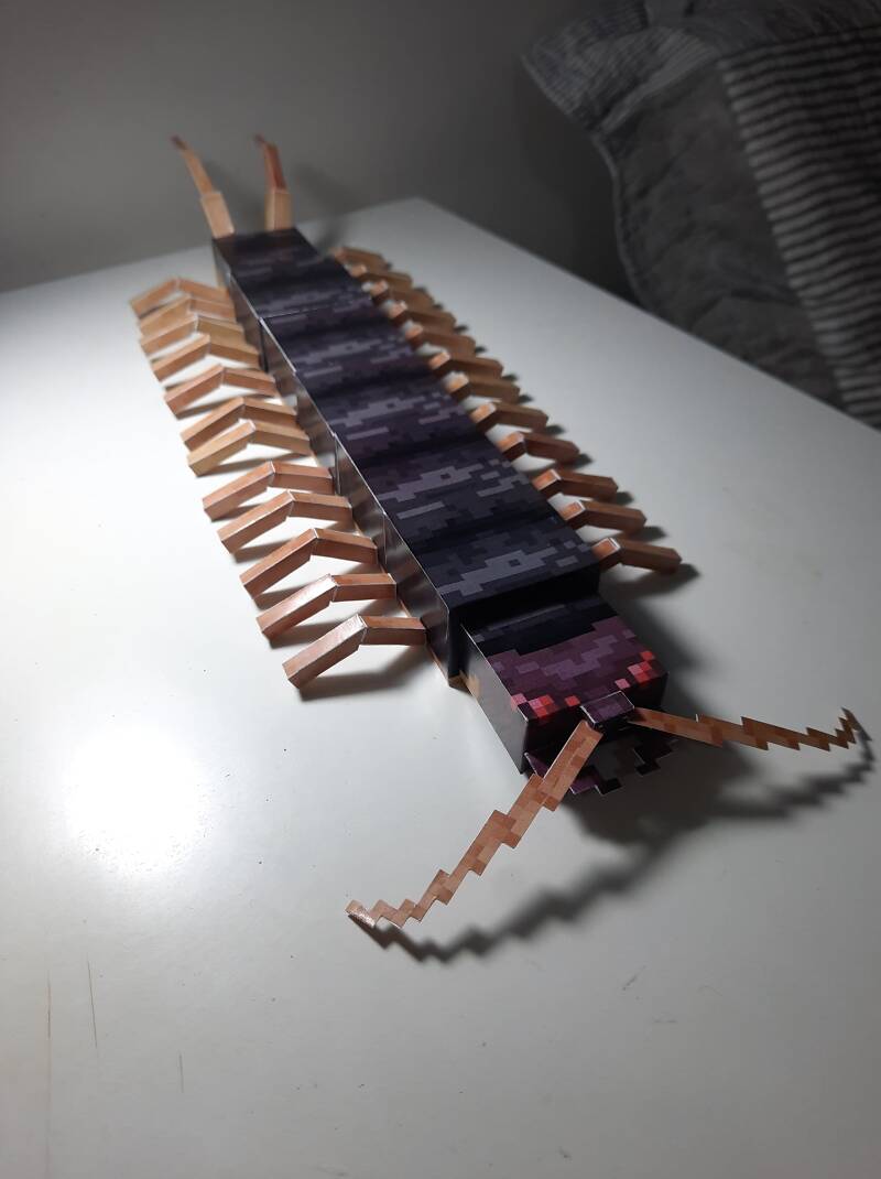 This Mob is incredibly long (35cm), i made it compatible with the actual size in the mod. Usually these beings have 6 to 8 segments counting the head. Each body segment has 4 legs. I prepared an optional papercraft, if you are modest you can make 6 segments, if you have more patience how about making 7 or 8? The choice is up to you!