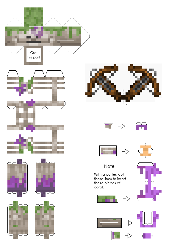 Sunken skeletons are an underwater variant of the skeleton. They look similar to the Mossy Skeleton from Jungle Awakens with the green patches of algae on its head and upper ribcage resembling vines and plants. On the right side of its face is a long patch of purple coral growing out of its eye, and on its legs and chest are smaller patches of purple coral growing on the bone. unlike their land-based counterparts, they have crossbows rather than bows.