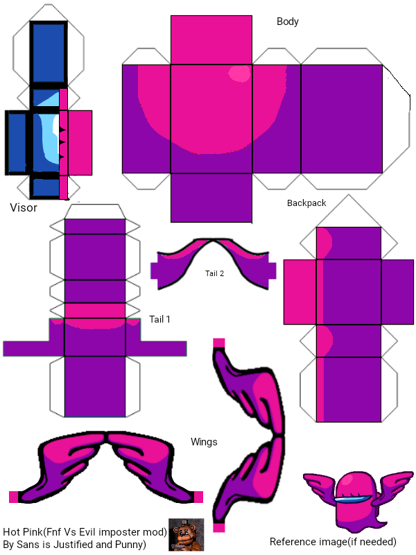Hot Pink is the second antagonist in the mod. They're an EVIL version of Green Impostor. Being a Crewmate as well. Hot Pink is a hot pink colored member of the crew, bean-shaped astronaut with de-attached floating hands. The mod presents them as a cocky but an insecure antagonist. Wielding a mic on their left hand and letting it hang on a wire attached to their left hand during the idle. Some part of the design is based off Green Impostor gone though a negative image filter, many changes were made, such as tweaking colors and building up the personality and their role in the mod. Hot pink is just a bit taller than a regular Crewmate. Hot Pink has a scientist role, which they extremely despise. Hot Pink is transgender, the character transition happened during a development by agreement of the team. Once dead, Hot Pink gets a Guardian Angel Role.
