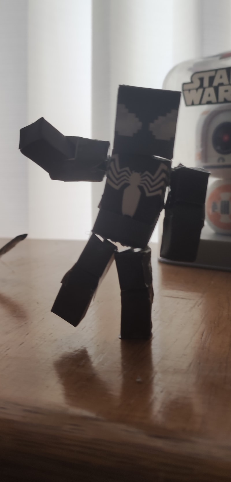 glue they template tu another paper and wait 2 cover the template with tape opcional 3 cuts on the parts of the legs and arms Fold the joins above the waist in half and glue the black part then cut above the white part then glue one of the circles then put them in the holes on the waist and chest then grab one of the joins that are under the chest and fold along the black lines and put the joins from the previous step and glue on the folded parts and test if the joins can rotate but do not come off, do it on the chest and waist