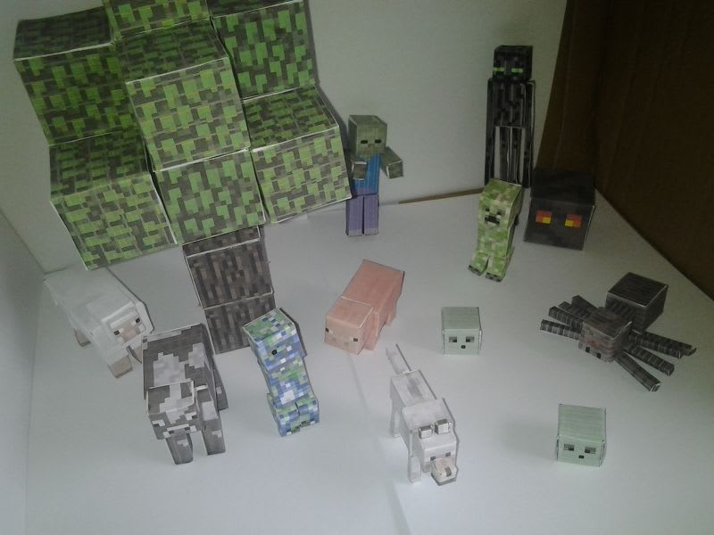 This pictures almost all of the papercraft models we've made from minecraft. It has almost every single standard animal and mob in the game.