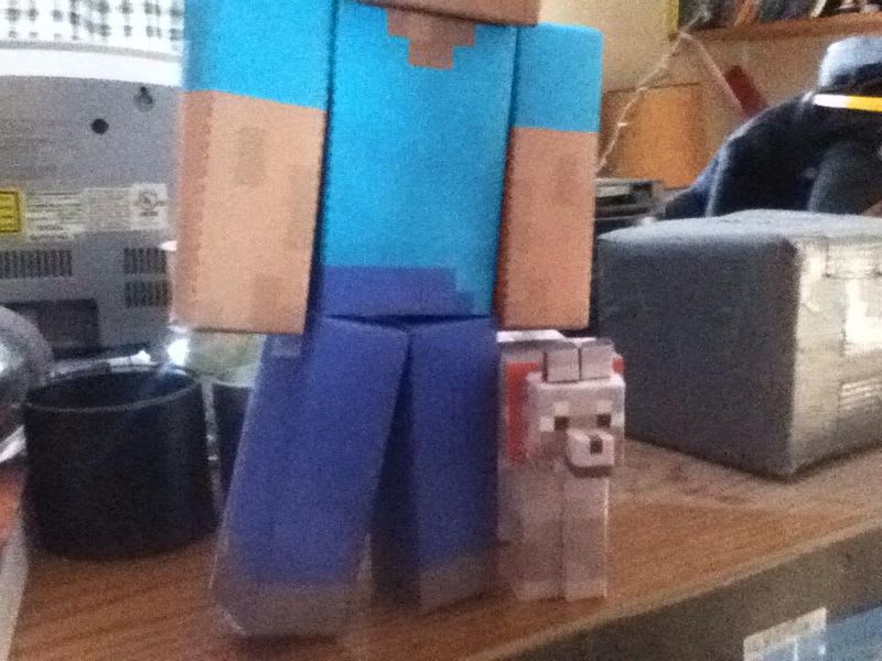 This is a white tamed wolf, part of my 10 inch tall papercrafting, i will upload designs on how you can make ten inch sizes soon. P.S. The dog isn't ten inches tall, it is in proportion to a ten inch tall minecrafter; the steve is a example of a 10 inch tall model