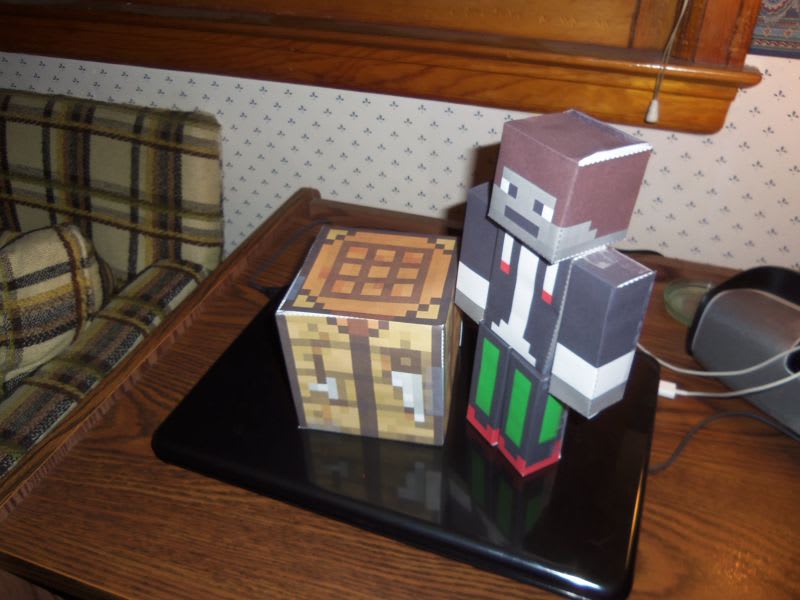 This is my current crafting table, it's in proportion to 10 inch steve, the skin in the pic is mine. The table is half the size of him. It took 3 pages for 1 block, XD.