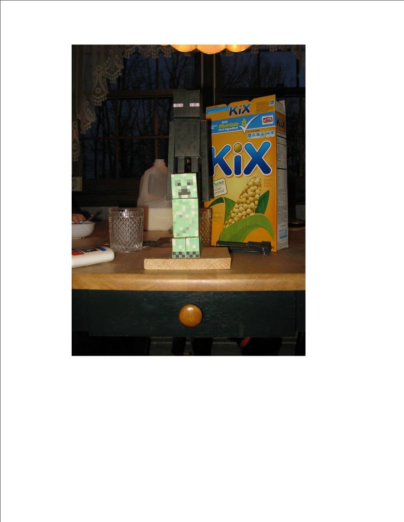 This is 15 inch enderman behind my 8 inch creeper. sory the milk & cereal are in the background