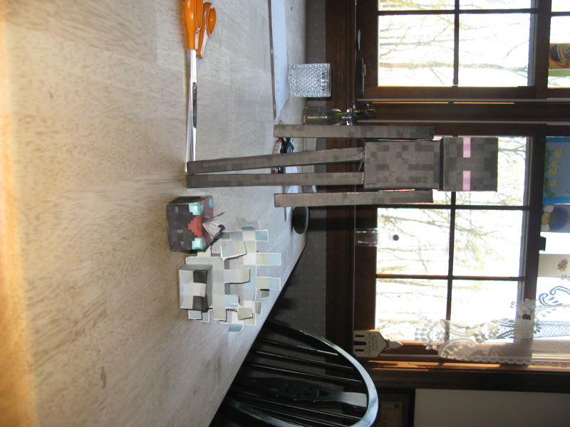 The silverfish has been siting in the car for a month and a half getting admired so the heat and cold kind of broke the glue. The enderman is in my my picture with the 8 inch creeper. :D