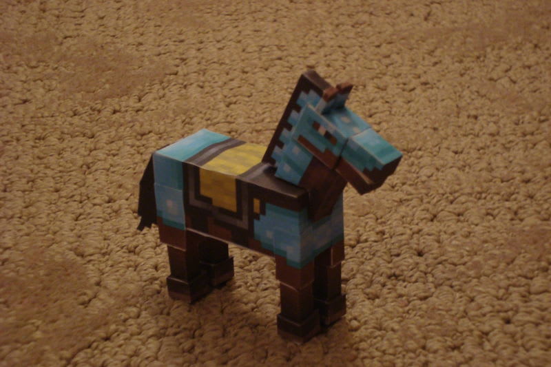 My first horse from Jojesper's generator! It is a brown w/ black spots, my favorite. He is protected by his diamond armour.