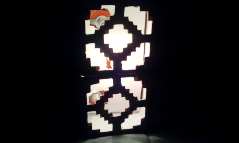 How to make it: Print two block of redstone on pixel papercraft and cut one surface of it(cut 2 blocks) When cut it, use a paper with glue to stick 2 blocks together( remember inside not outside) On that block, you can make a insert battery to take it and put it easily and very fast Now, you use your craft knive and cut the surface that have light like the picture This step maybe take a little bit long cause you may go to the market to buy battery and mini lights bub to make it ( or you can use a decoration light, cut one of it ) Finally, you must make a case to hold the light, make a hole middle of case to put the lights in that You put the battery like this: one in the minus and one in the plus And finally you have finish your own redstone lamp And it's took 2 or 3 dollars