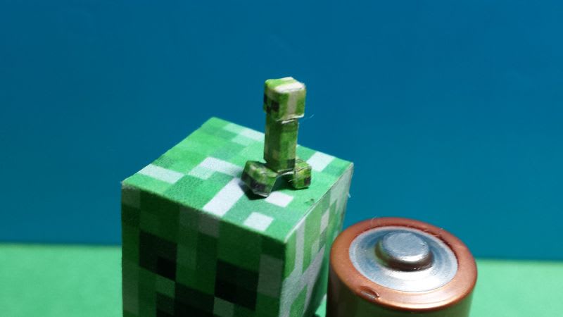 Standing at roughly 1cm (3/8 in) tall this creeper can snuggly sit on 2 pixels and barely stay on the button off the positive end of a batteryh