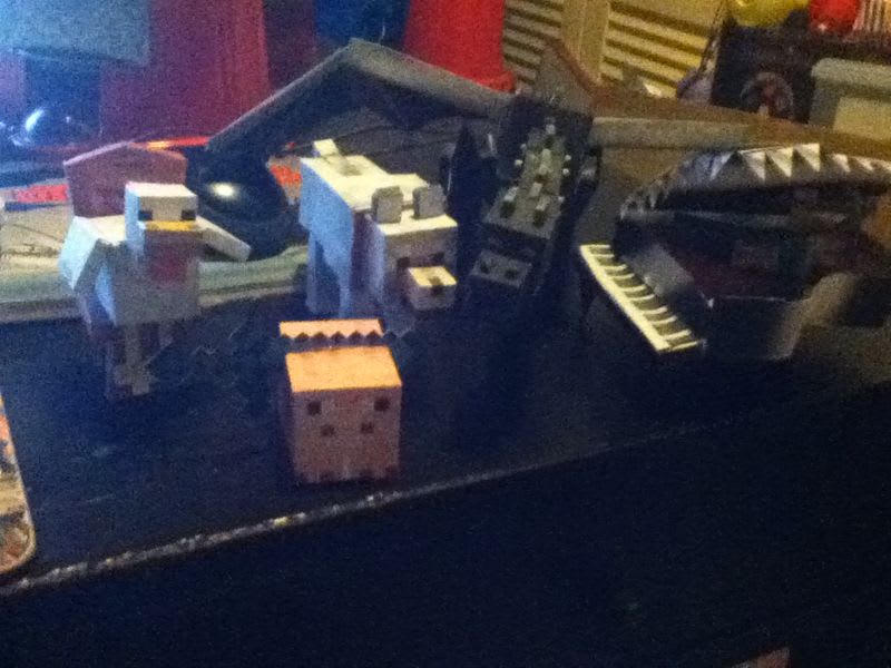 (Mini Pig And Diamonds Sword) (Chicken And Chair) (Bendable Wolf) (Bendable Ender Dragon) (Steve And Mad Piano)