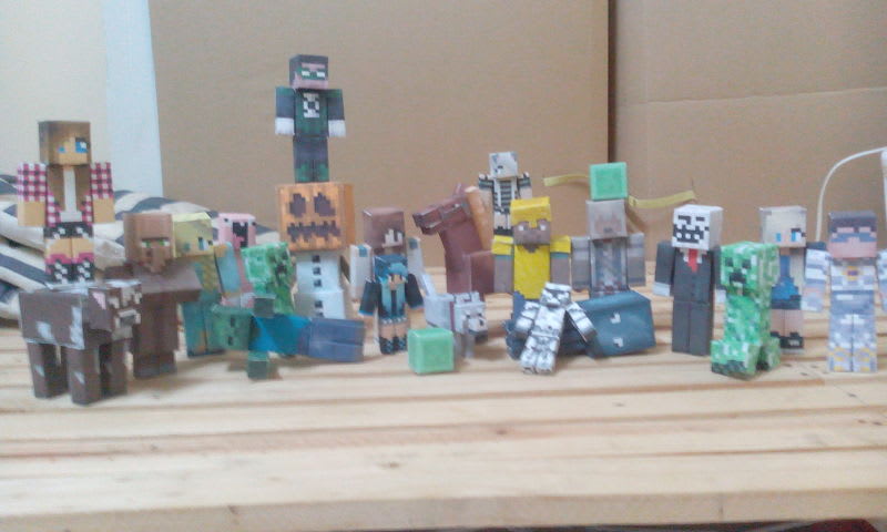 New mobs: wolf tamed, horse, snow golem with big head, the second creeper arriving to papercraft town!!! Hooray :)