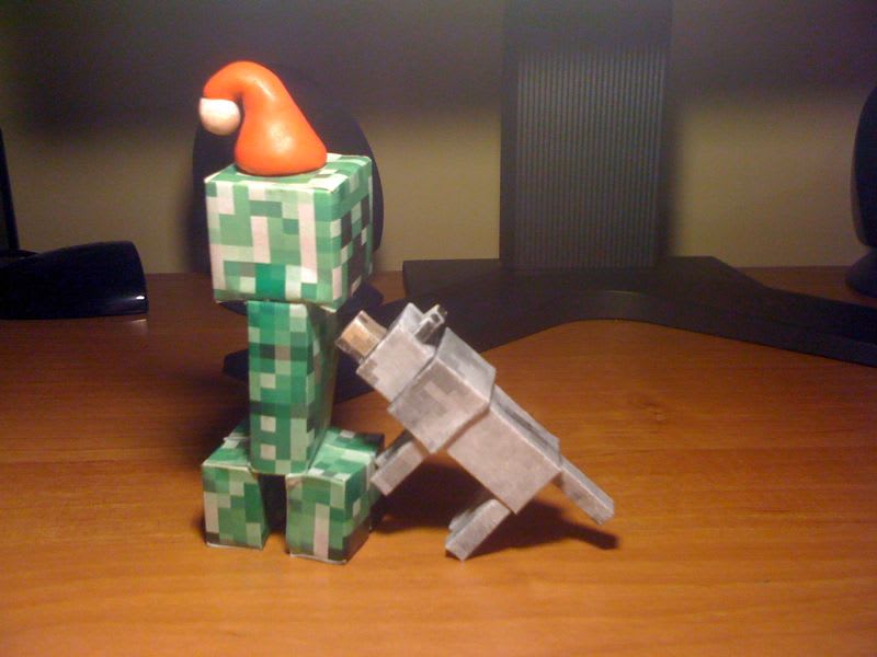 Wolf: Woof! It's a Creeper Claus! Give me bones! Give me bones! - Winter is coming, so I made a photo shot of a wolf and Santa-Creeper-Claus ;) Oh, yeah. Winter. By this cold temperature outside, I have a drying and sore throat. Bad luck. Don't distribute! AND: Creeper's hat is made with polymer clay. Fastly, uh.
