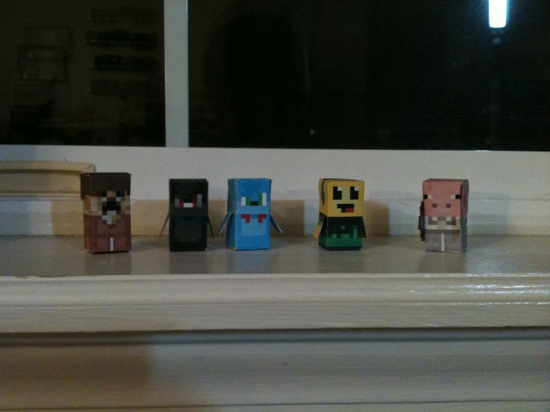 Hello everybody, it's oxfighter, and sadly, winter break has ended. Now i am going back back to the jail house, or school as people call it. I am excited to see friends and my special classes, but now that I have more stuff I have to do, like Homework, caring for my pet hermit crabs, and working on the pile up of unmade papercrafts, so there won't be much pictures, I can't do videos 'cause no youtube account, I'll try to do a design but i don't think it will be Just Gold. So this picture contains a snortbow, the legendary Maki, myself, ruF esreveR (say it backwards), and an armored creeper. this maybe be the only photo of the week before the weekends, but maybe it won't be so bad. Okay, cya next time! hangs up the phone