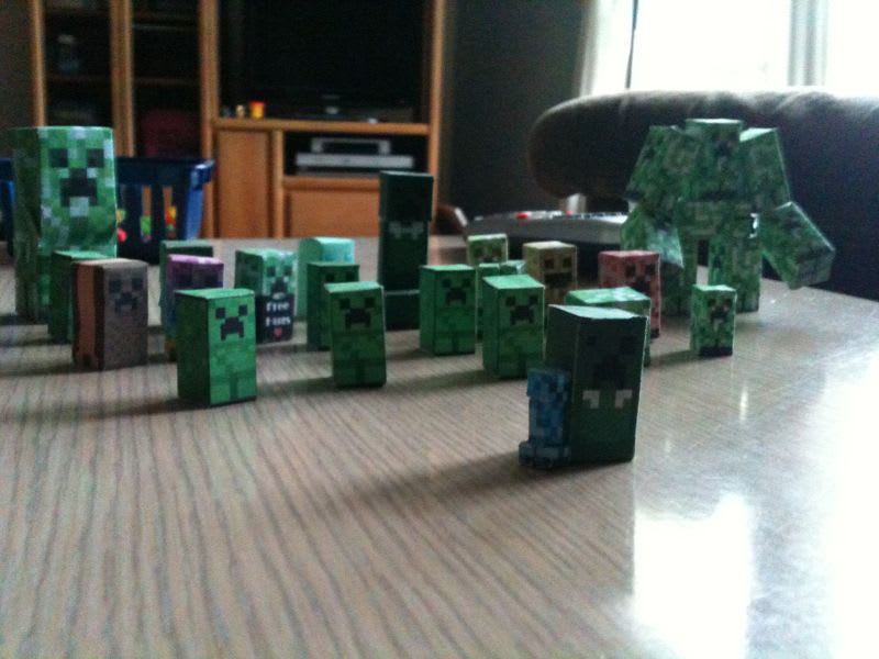 Go creepers! blow up all the houses! Now wait! not mine! (also thanks to everyone who commented on my last post, i know it was weird to make a post that has nothing to do papercraft beside the photo. but thanks to all the support, I'm not regretting anything! I love the game! so thanks everyone!)