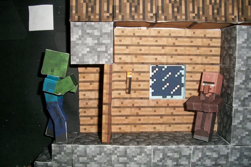 Bang! Bang! with each blow, the door is broken down more and more. The villager, in his last moments, is spinning around in terror and confusion. Then suddenly: 'CRACK!' The door is open! The villager attempts to run away, but the zombie catches his arm! The villager struggles to no avail, as the zombie's grip is tight. with incredible and ruthless swiftness, the zombie attacks... and the villager is no more.