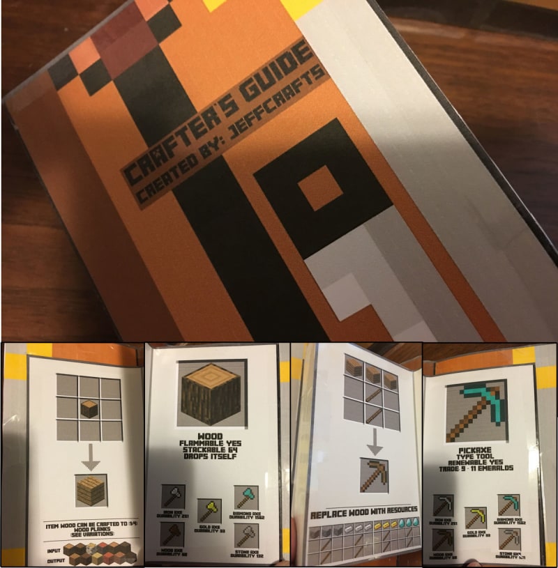 Original designs/inspires:http://www.pixelpapercraft.com/papercraft/5457e0e642f6476b04000070/3-tiny-bookshttp://www.pixelpapercraft.com/papercraft/512d4e071e6b0dc26300001f/mining-guide-book
