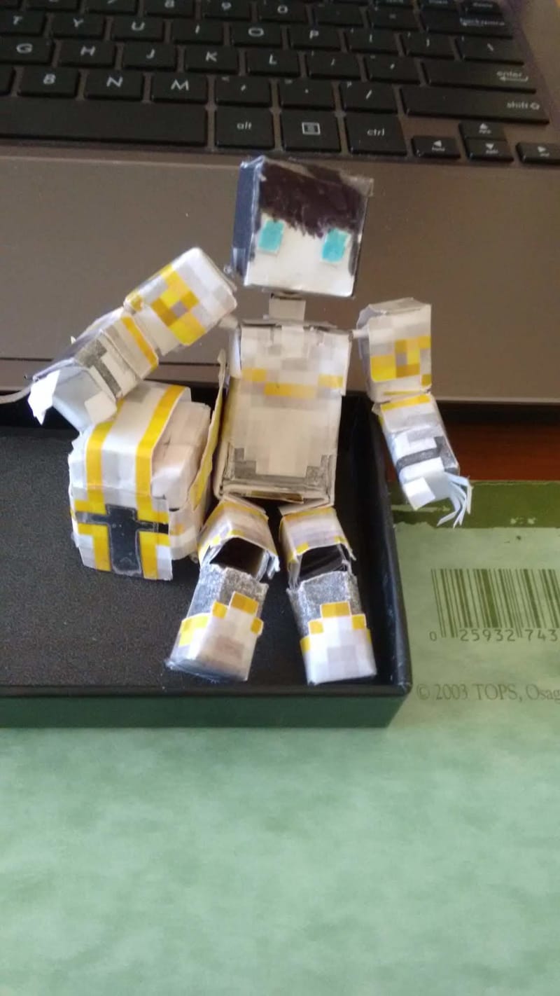 I'm new here, so I'm not exactly sure what's going on. This is my first post, which happens to be a photo of a character I created a few months ago. For the armor, I used a design created by RoosterBuster called 'custom paladin armor', then used a blank skin template and created a face using paper and sharpie. As you can see, I also decided to give him mobile joints and fingers. I think I got a little carried away when I put a coat of nail polish on his armor.