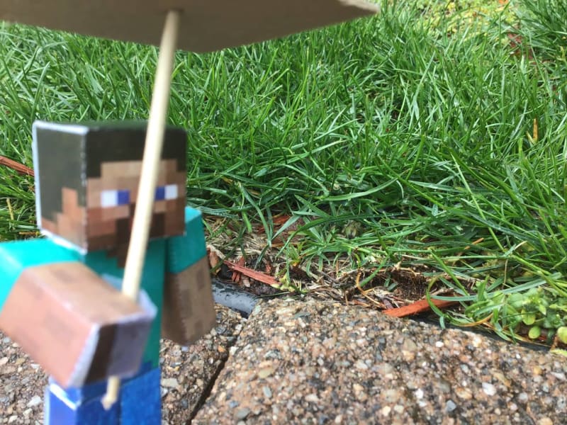 Steve is in the rain with an umbrella (The umbrella actually works! steve didn't get that wet)