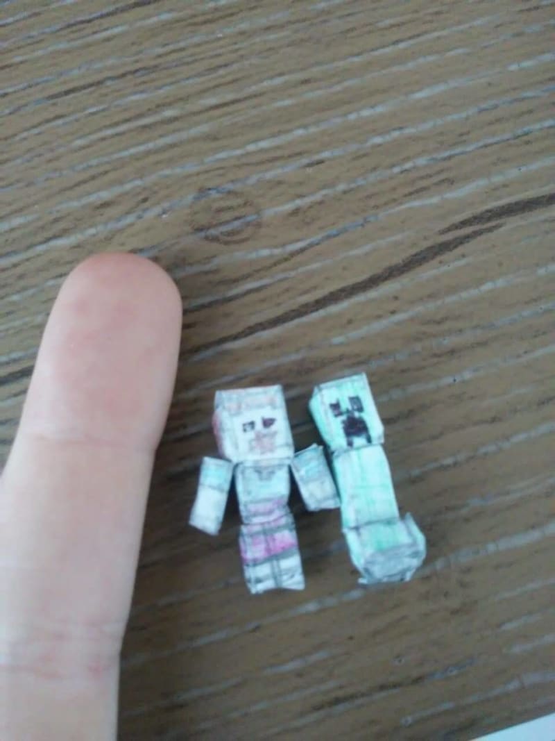 Hello!!! if you can make this micro-figures you can comment! i made homemade because of the size regulation is hard and why print! you can make homemade hre to the size! https://www.pixelpapercraft.com/papercraft/4f1b1e1a6f923f8035000002/creeper and https://www.pixelpapercraft.com/papercraft/4f1ab58a0b6e62331f000002/steve. and if you have an account you can uploa your photo of this!